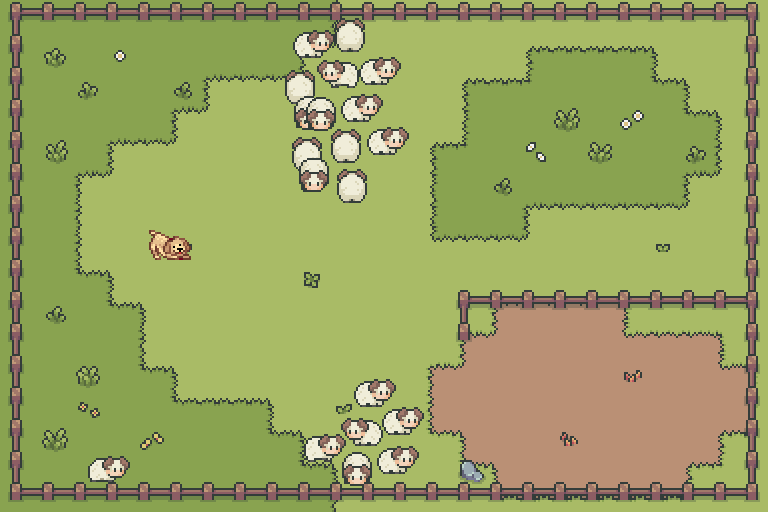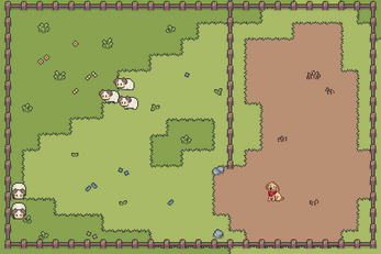 Artwork by otterisk (environment and sheep sprites) and Revouger (dog sprites).